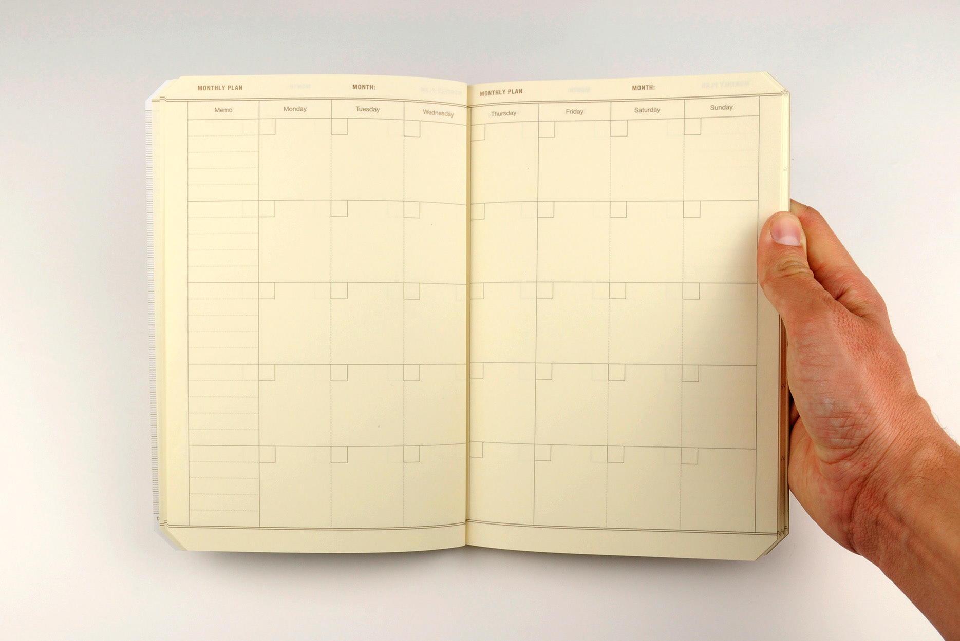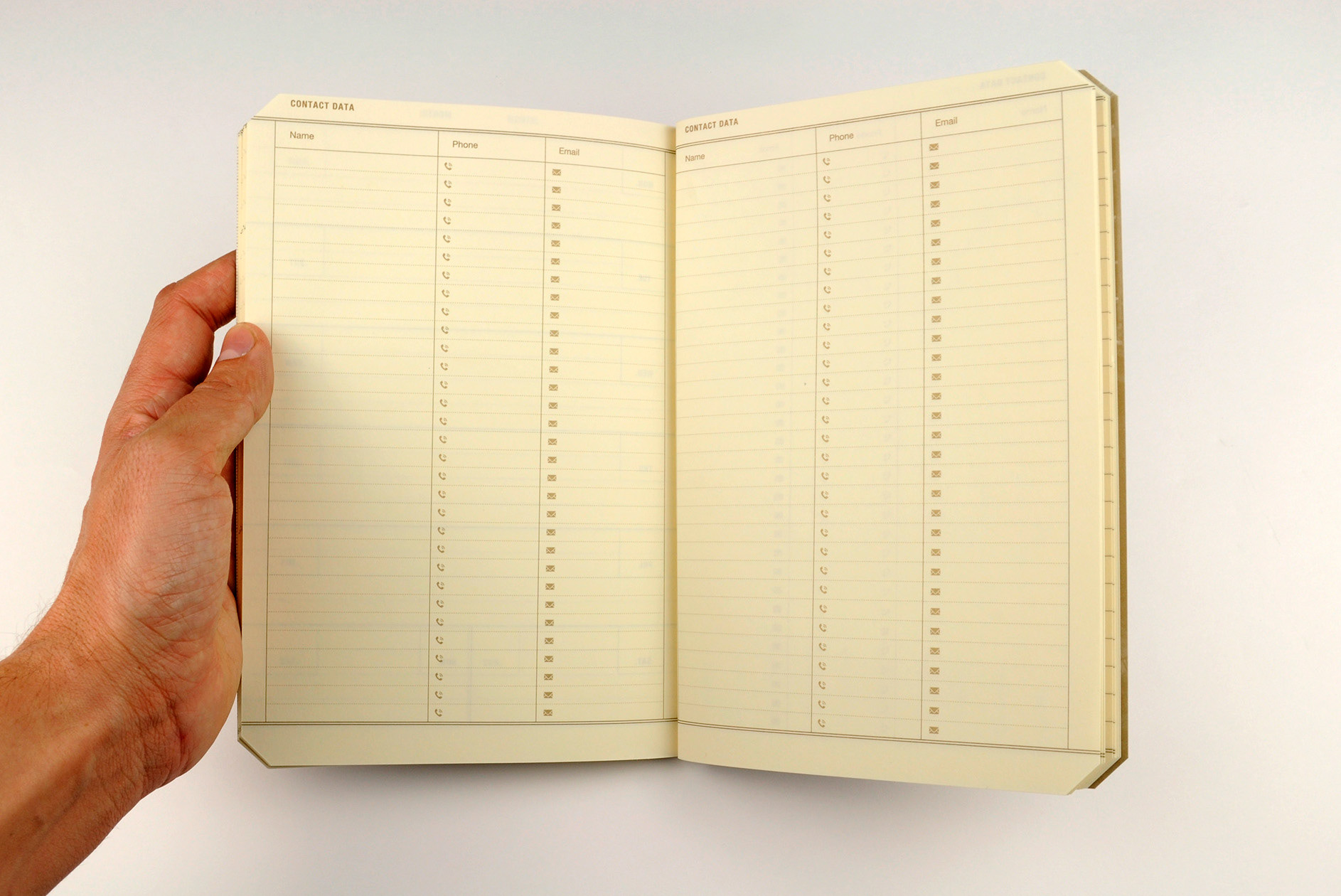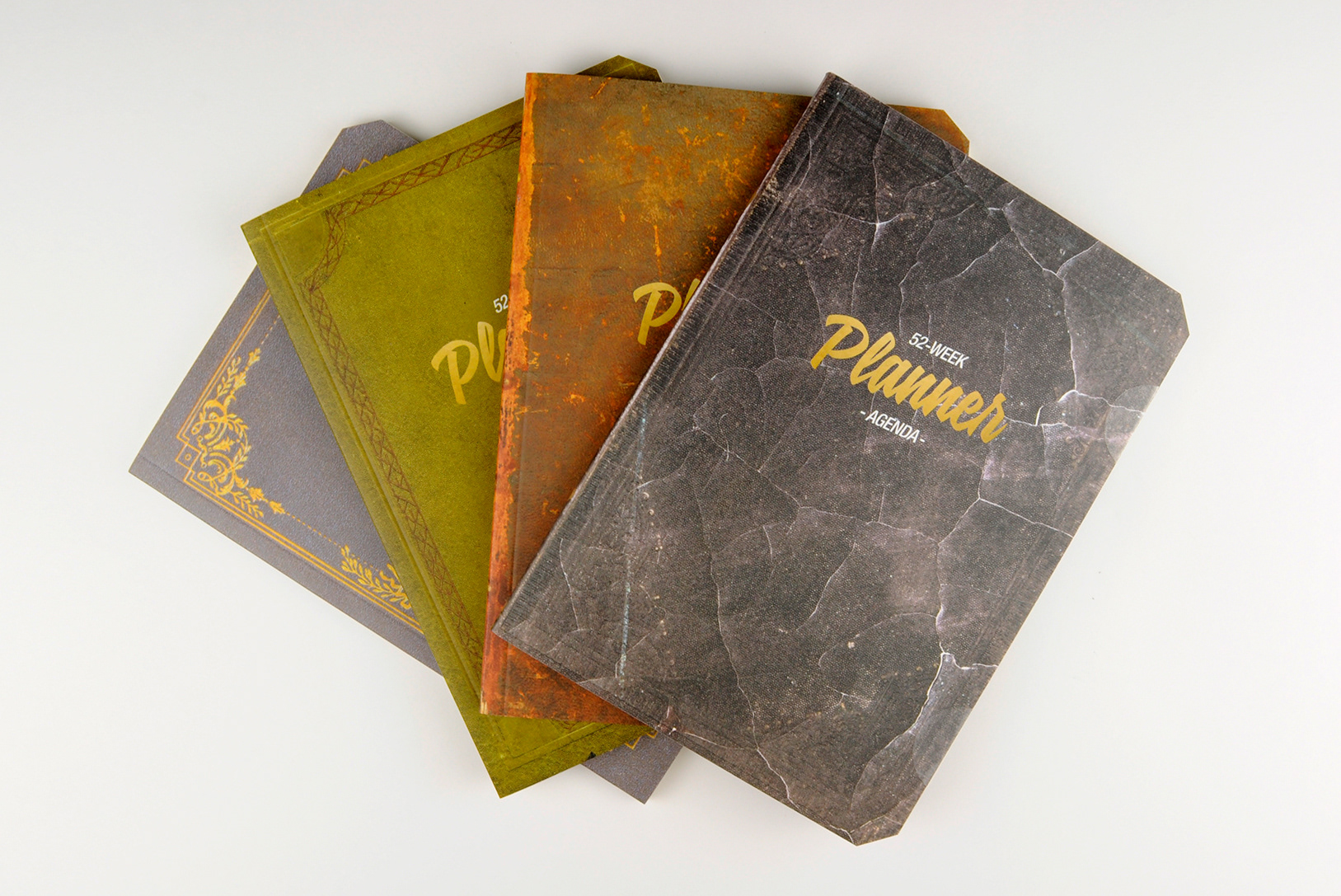 The planners featured 96 pages and were bound using Otabind stitching, which allowed the planner to open easily. The cover was digitally printed on 300-gram offset paper with a matte, scratch-resistant lamination. The interior pages were printed with metallic ink on 90-gram bone-colored offset paper.